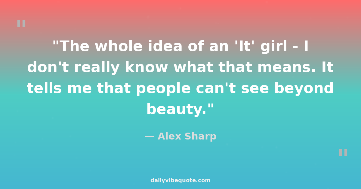 "The whole idea of an 'It' girl - I don't really know what that means. It tells me that people can't see beyond beauty."