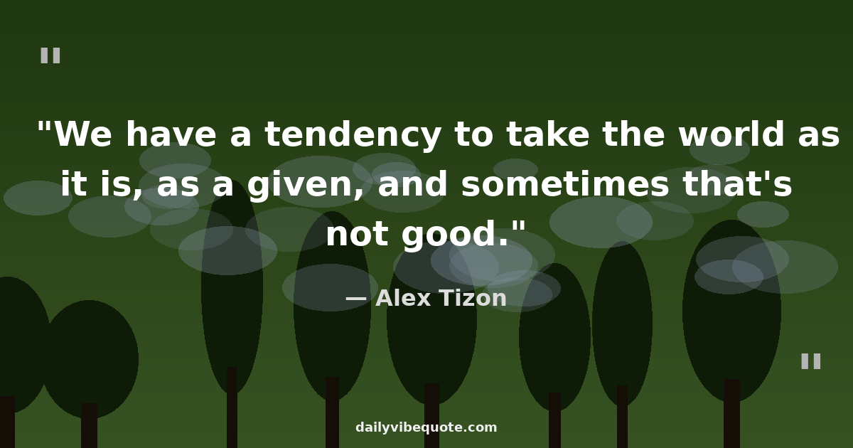 "We have a tendency to take the world as it is, as a given, and sometimes that's not good."