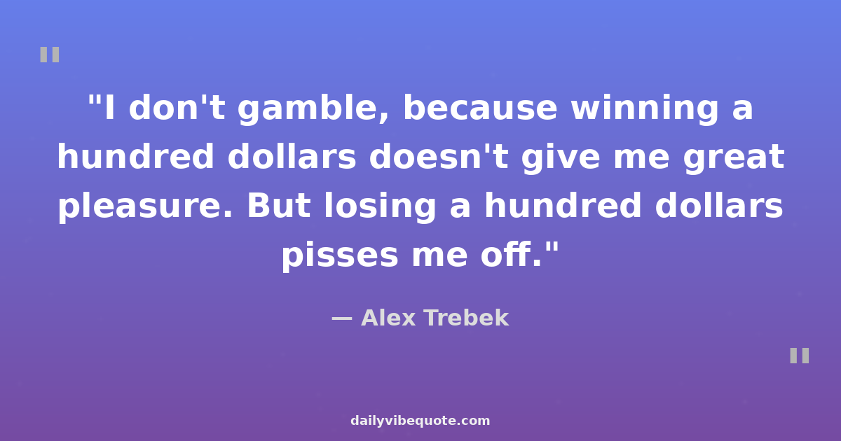 "I don't gamble, because winning a hundred dollars doesn't give me great pleasure. But losing a hundred dollars pisses me off."