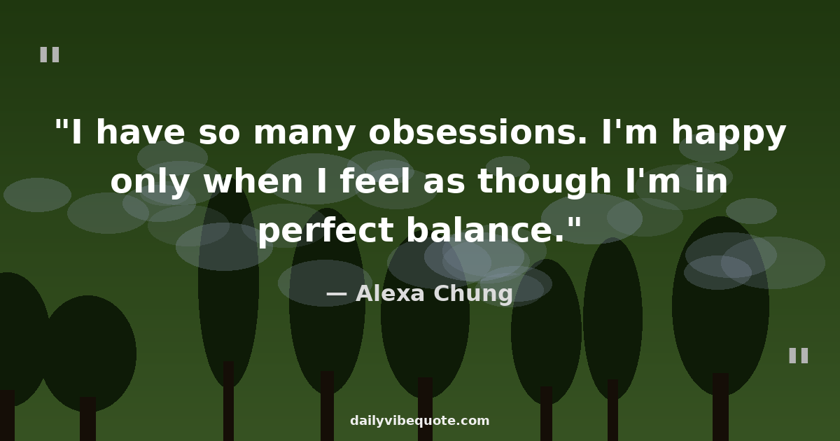 "I have so many obsessions. I'm happy only when I feel as though I'm in perfect balance."