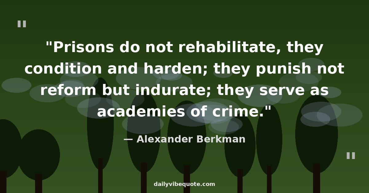 "Prisons do not rehabilitate, they condition and harden; they punish not reform but indurate; they serve as academies of crime."