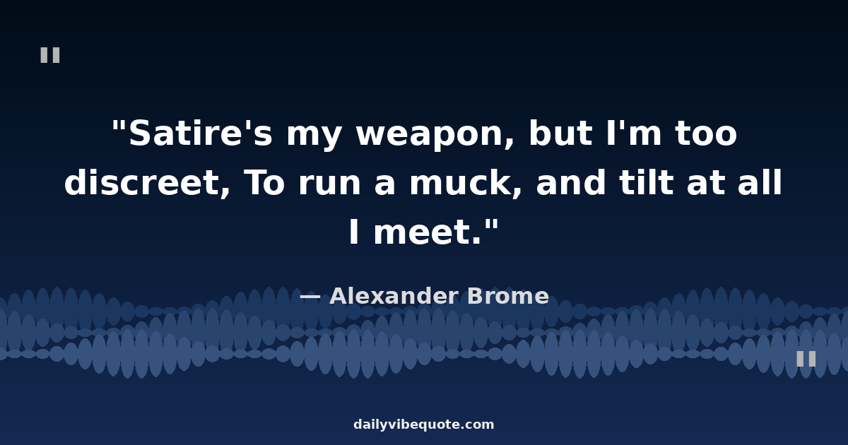 "Satire's my weapon, but I'm too discreet, To run a muck, and tilt at all I meet."