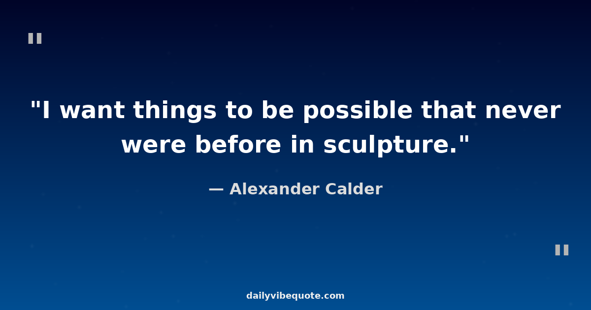 "I want things to be possible that never were before in sculpture."