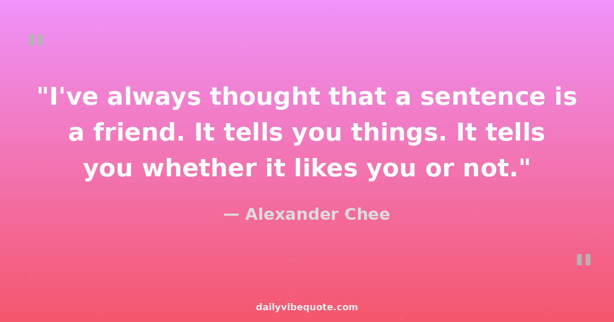 "I've always thought that a sentence is a friend. It tells you things. It tells you whether it likes you or not."