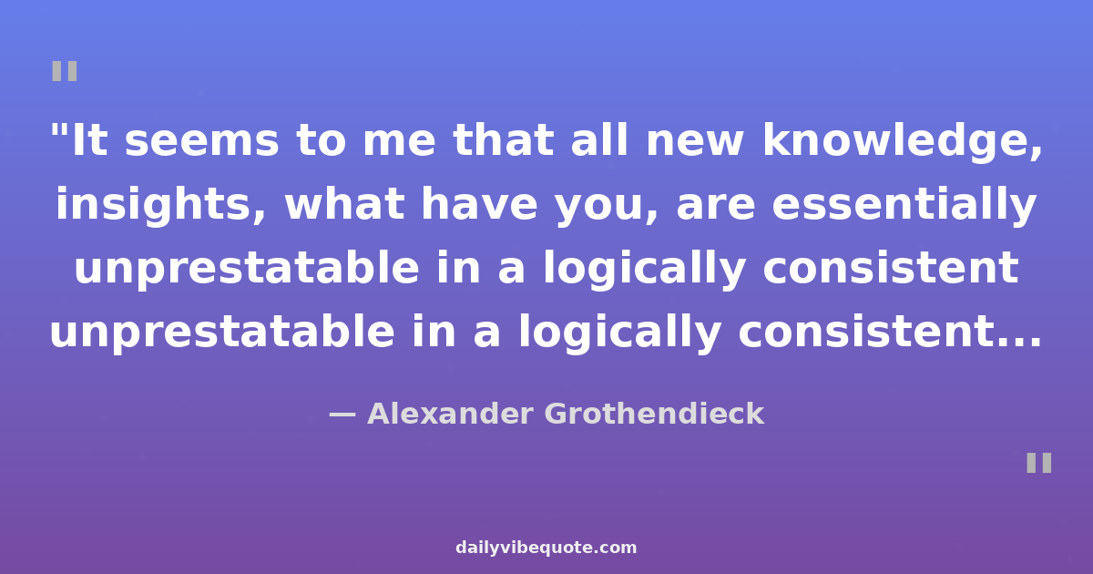 "It seems to me that all new knowledge, insights, what have you, are essentially unprestatable in a logically consistent framework. It's only that the unformulable makes its appearance through a formula that illuminates it in a distant flicker."
