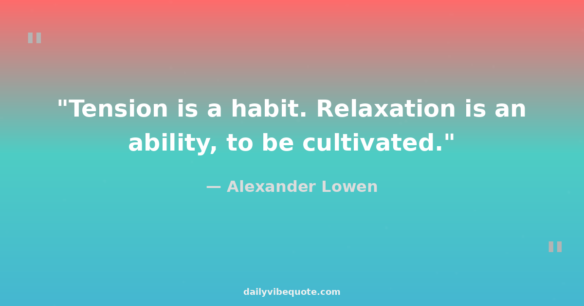"Tension is a habit. Relaxation is an ability, to be cultivated."