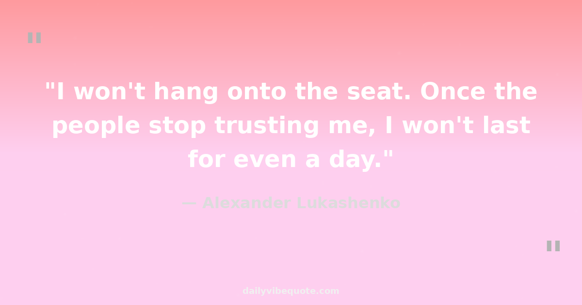 "I won't hang onto the seat. Once the people stop trusting me, I won't last for even a day."