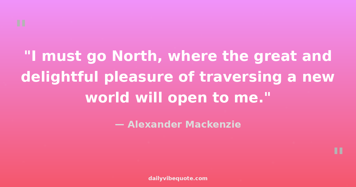 "I must go North, where the great and delightful pleasure of traversing a new world will open to me."