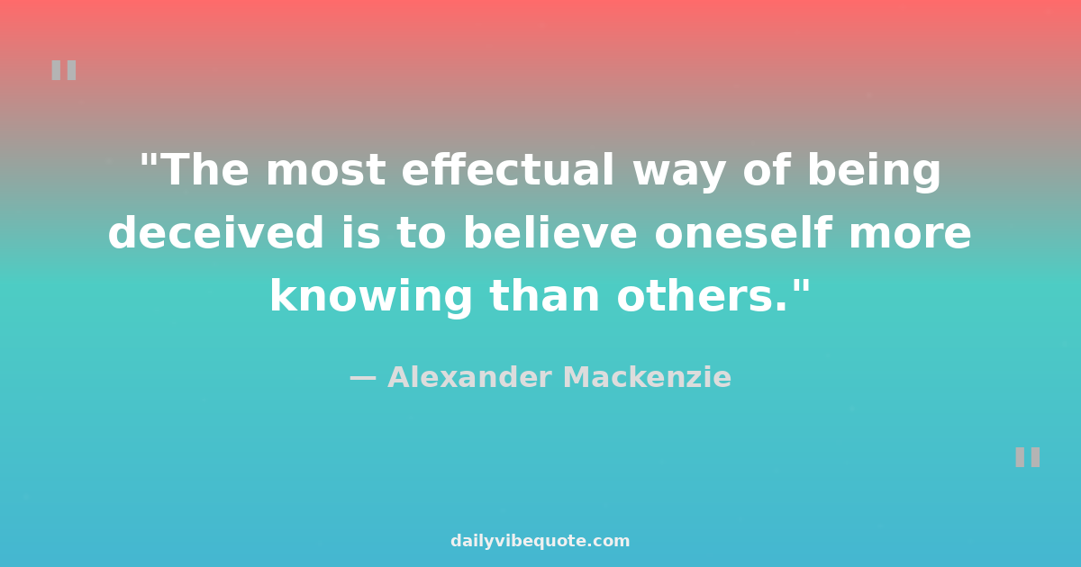 "The most effectual way of being deceived is to believe oneself more knowing than others."