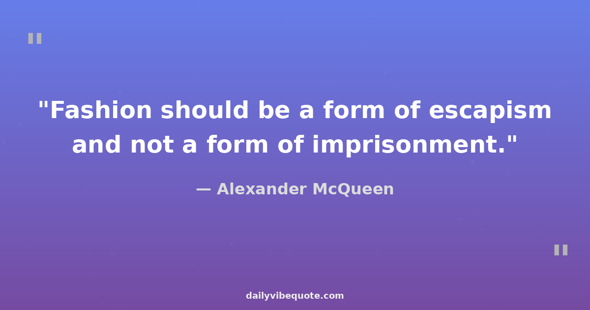 "Fashion should be a form of escapism, and not a form of imprisonment."