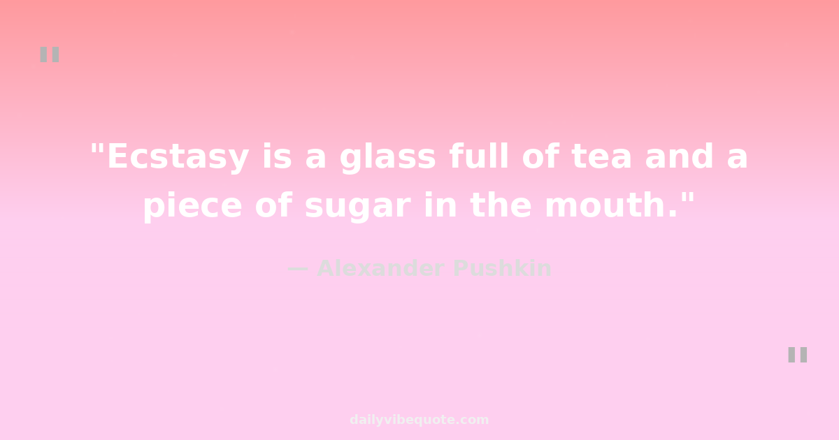 "Ecstasy is a glass full of tea and a piece of sugar in the mouth."