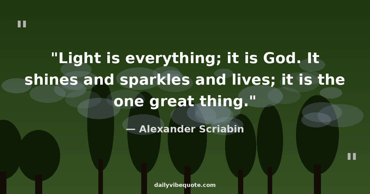 "Light is everything; it is God. It shines and sparkles and lives; it is the one great thing."