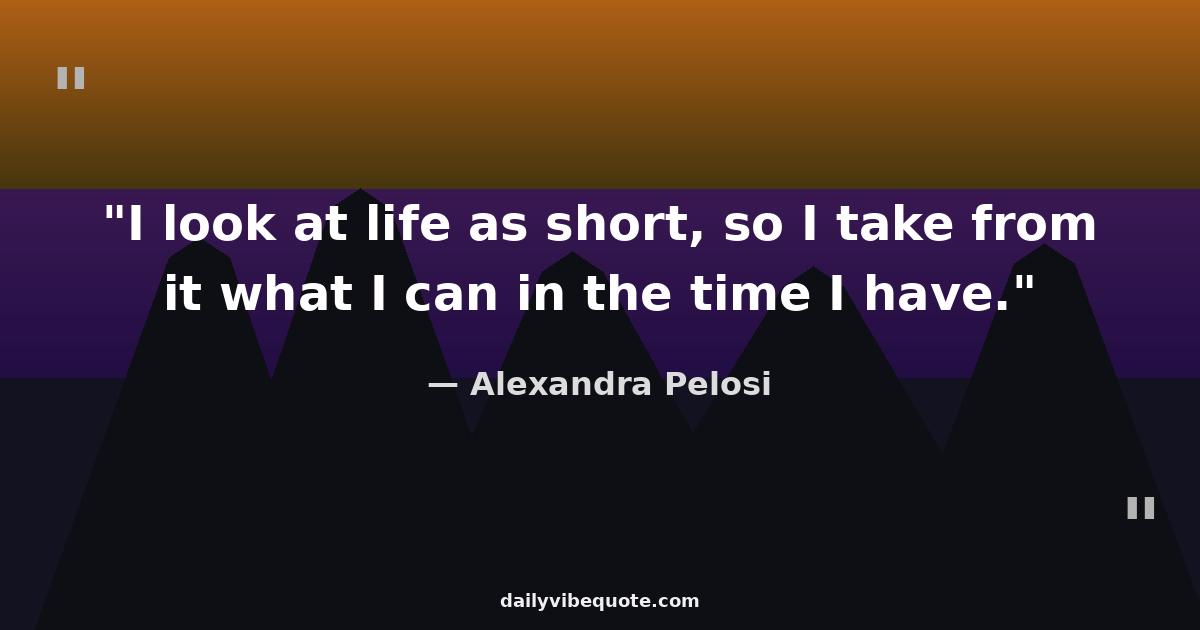 "I look at life as short, so I take from it what I can in the time I have."