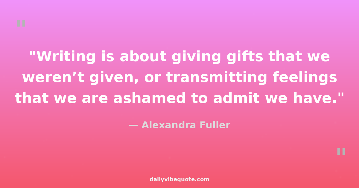 "Writing is about giving gifts that we weren’t given, or transmitting feelings that we are ashamed to admit we have."