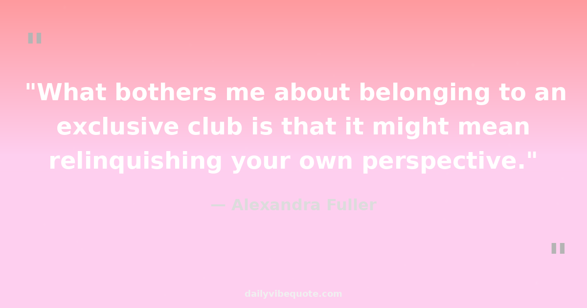 "What bothers me about belonging to an exclusive club is that it might mean relinquishing your own perspective."