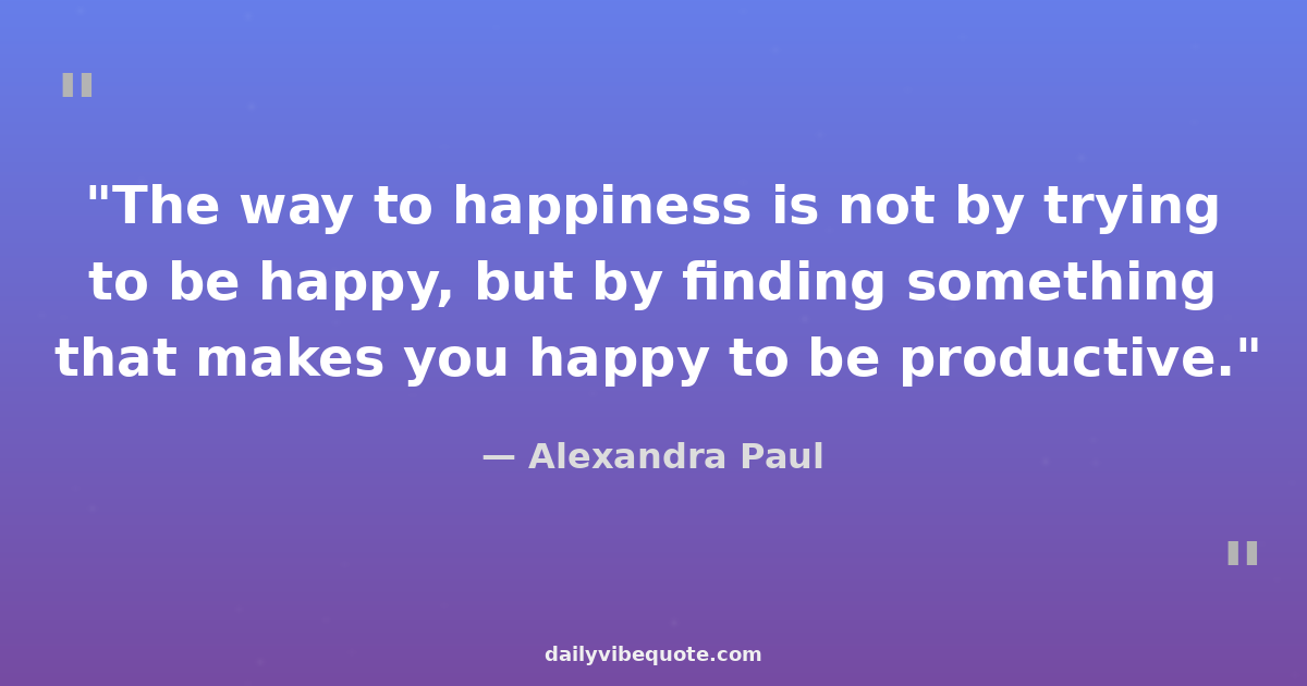 "The way to happiness is not by trying to be happy, but by finding something that makes you happy to be productive."