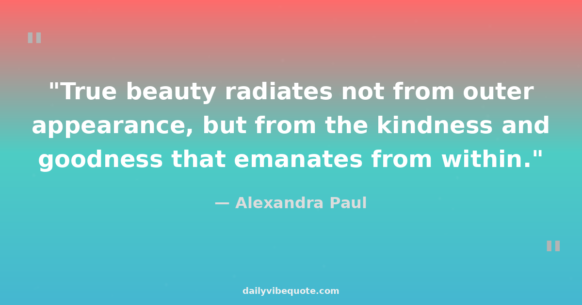 "True beauty radiates not from outer appearance, but from the kindness and goodness that emanates from within."