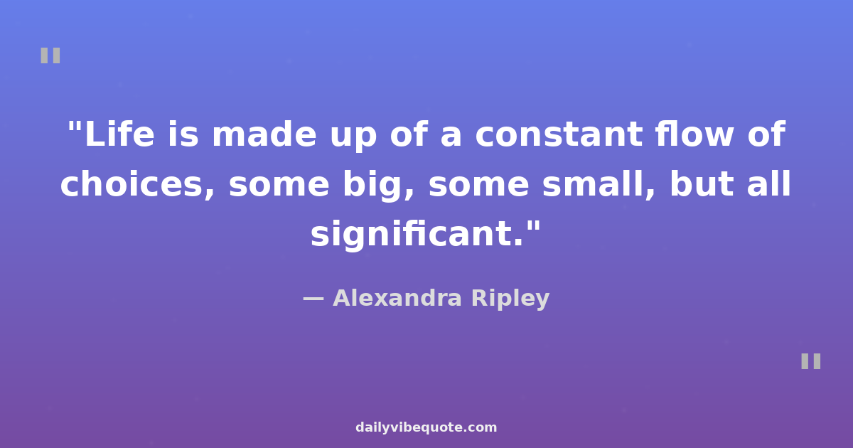 "Life is made up of a constant flow of choices, some big, some small, but all significant."