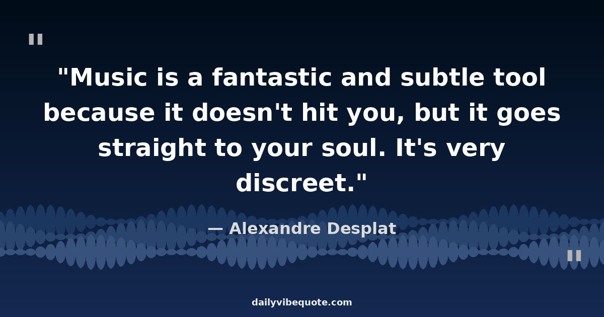 "Music is a fantastic and subtle tool because it doesn't hit you, but it goes straight to your soul. It's very discreet."