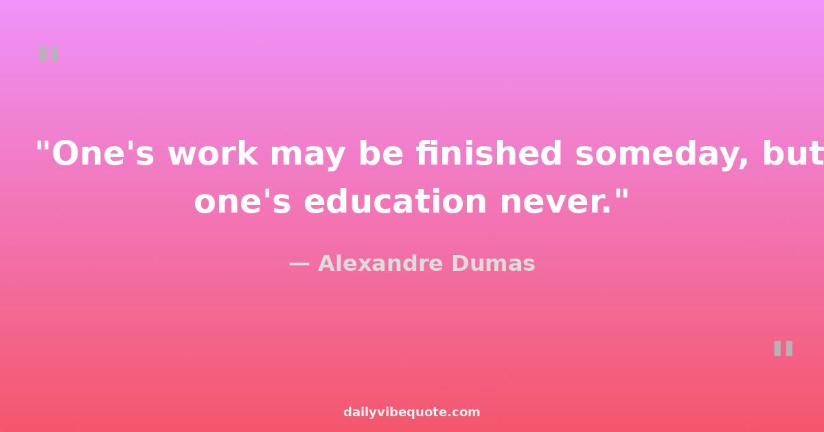 "One's work may be finished someday, but one's education never."