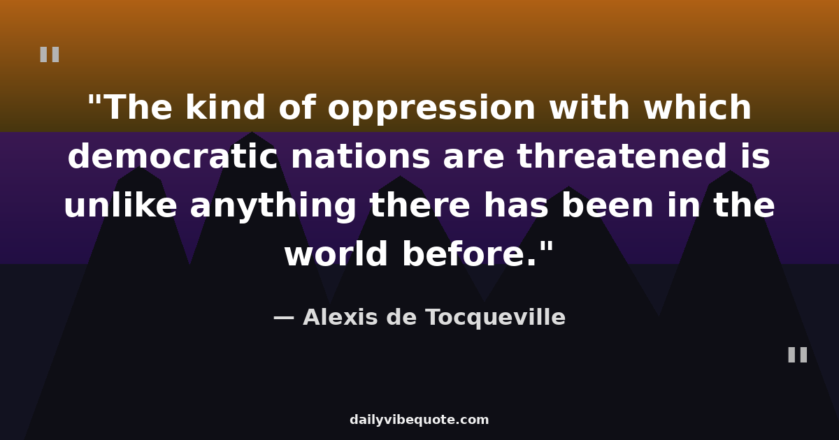 "The kind of oppression with which democratic nations are threatened is unlike anything there has been in the world before."