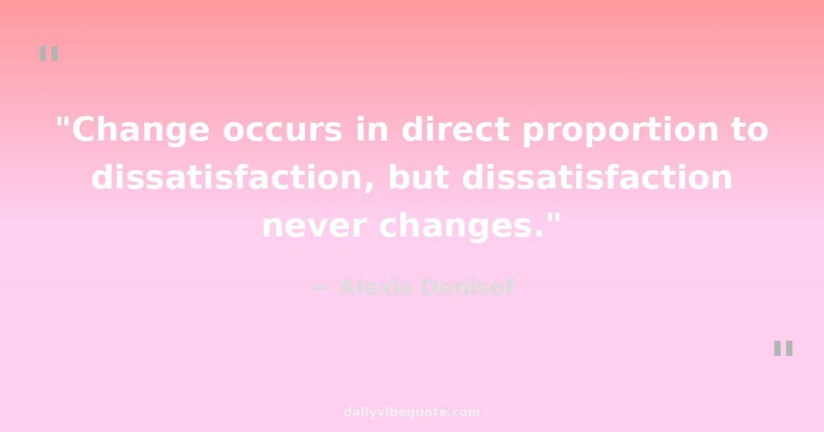 "Change occurs in direct proportion to dissatisfaction, but dissatisfaction never changes."
