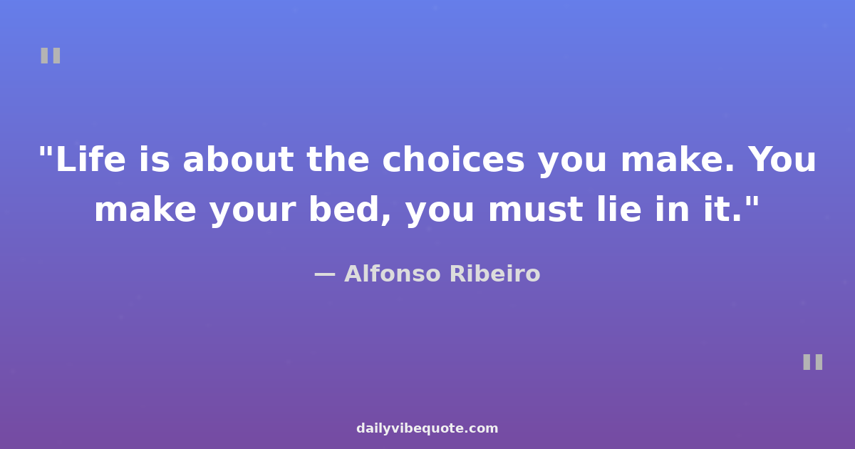 "Life is about the choices you make. You make your bed, you must lie in it."