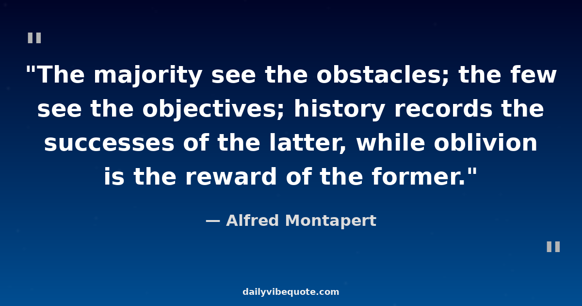 "The majority see the obstacles; the few see the objectives; history records the successes of the latter, while oblivion is the reward of the former."
