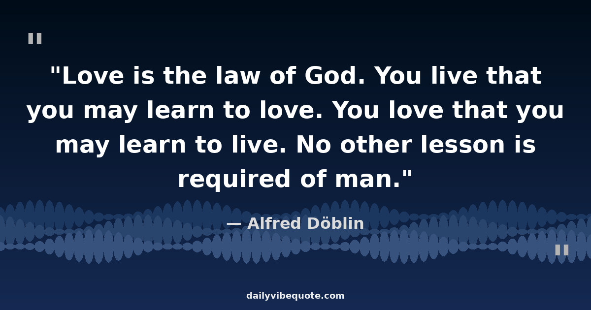 "Love is the law of God. You live that you may learn to love. You love that you may learn to live. No other lesson is required of man."