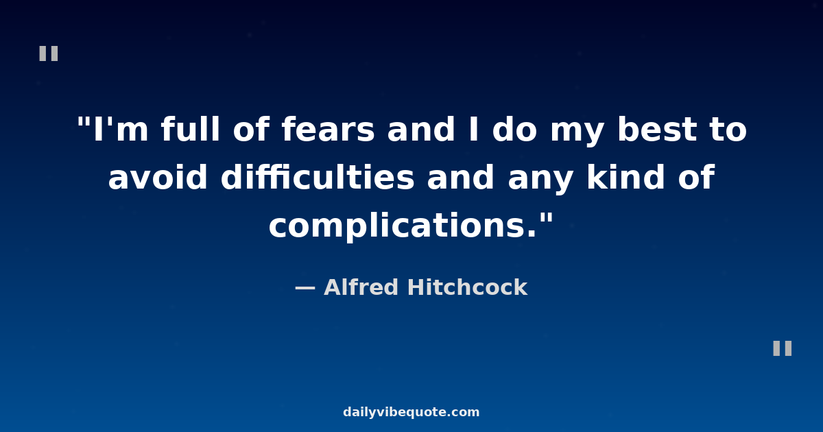 "I'm full of fears and I do my best to avoid difficulties and any kind of complications."