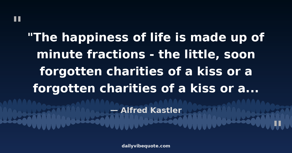 "The happiness of life is made up of minute fractions - the little, soon forgotten charities of a kiss or a smile, a kind look, a heartfelt compliment."