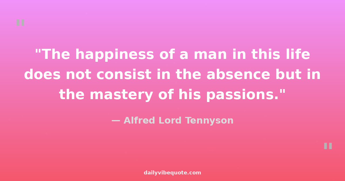 "The happiness of a man in this life does not consist in the absence but in the mastery of his passions."