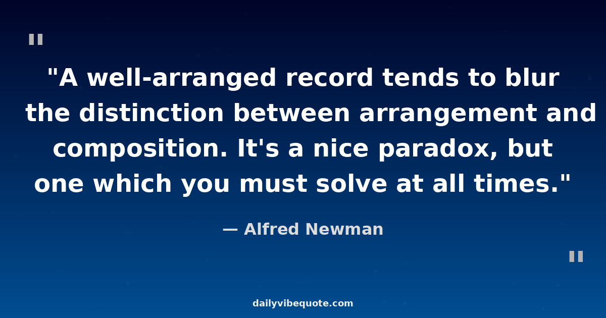 "A well-arranged record tends to blur the distinction between arrangement and composition. It's a nice paradox, but one which you must solve at all times."