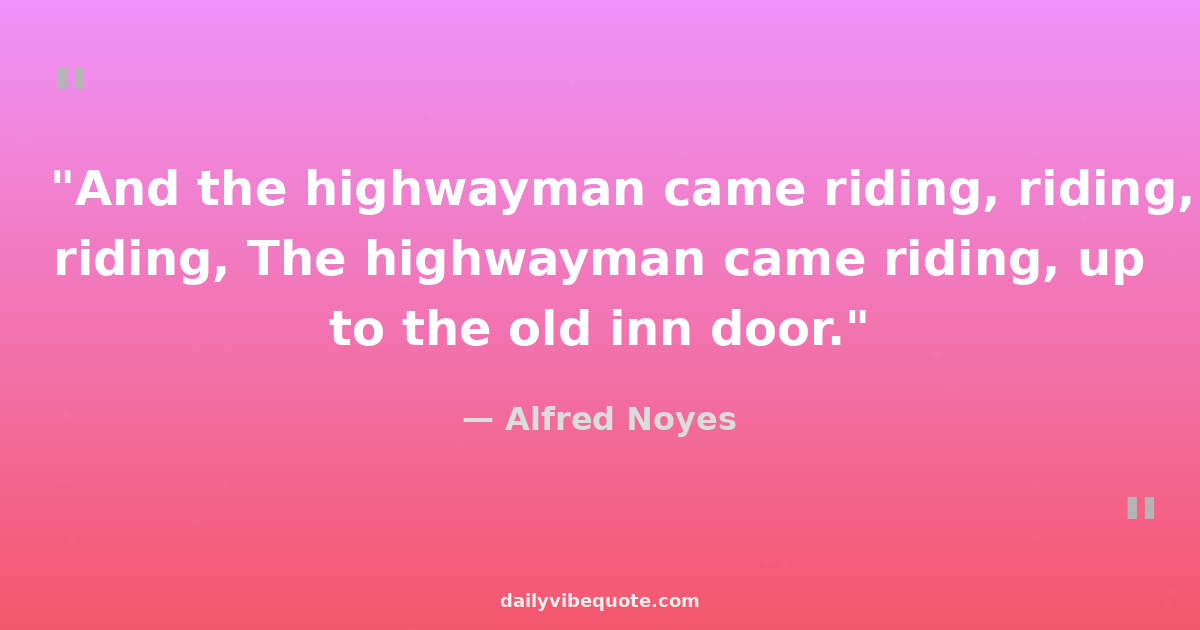 "And the highwayman came riding, riding, riding, The highwayman came riding, up to the old inn door."