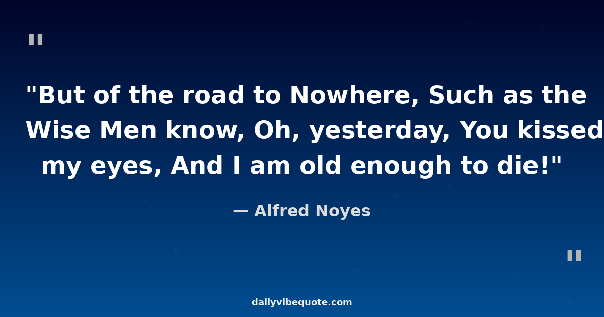 "But of the road to Nowhere, Such as the Wise Men know, Oh, yesterday, You kissed my eyes, And I am old enough to die!"