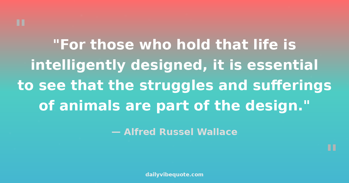 "For those who hold that life is intelligently designed, it is essential to see that the struggles and sufferings of animals are part of the design."