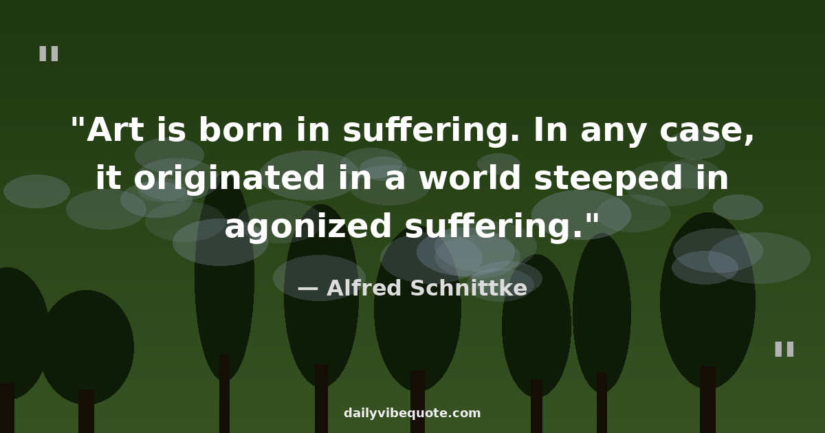"Art is born in suffering. In any case, it originated in a world steeped in agonized suffering."