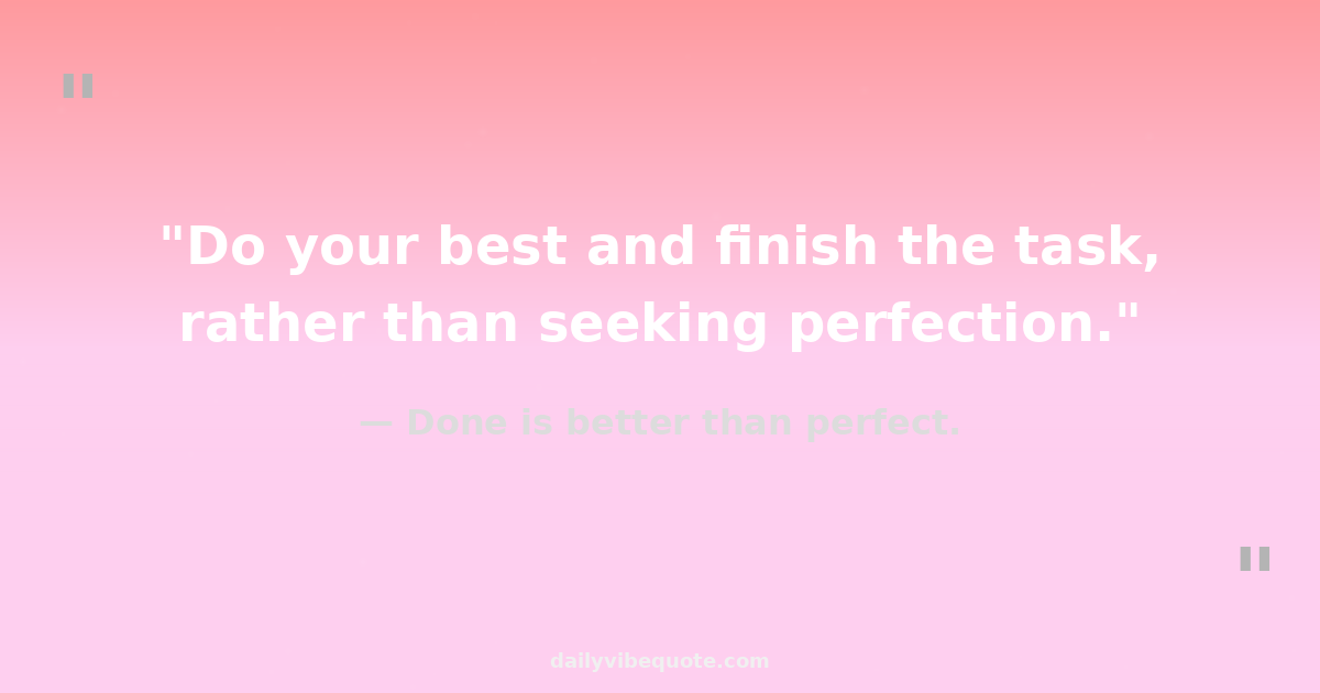 "Do your best and finish the task, rather than seeking perfection."
