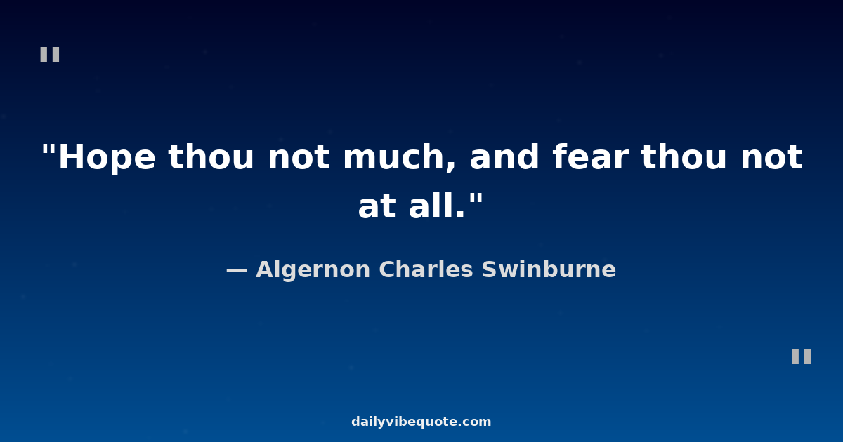 "Hope thou not much, and fear thou not at all."