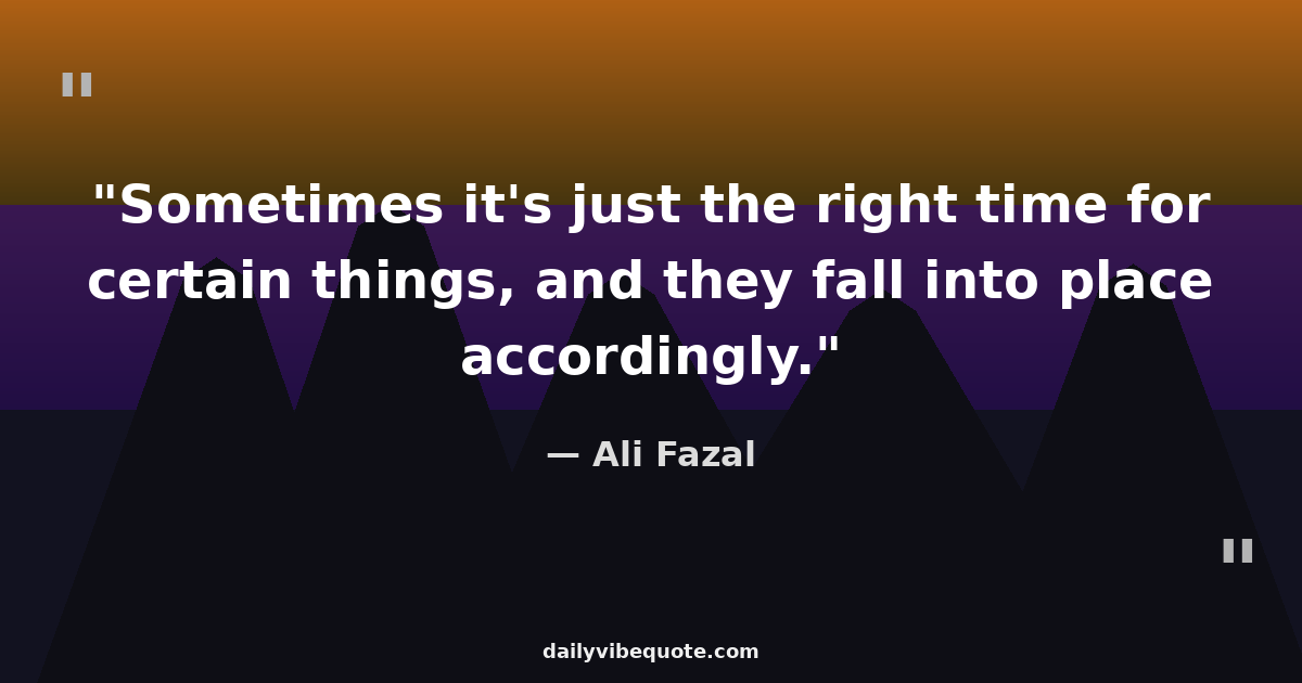 "Sometimes it's just the right time for certain things, and they fall into place accordingly."