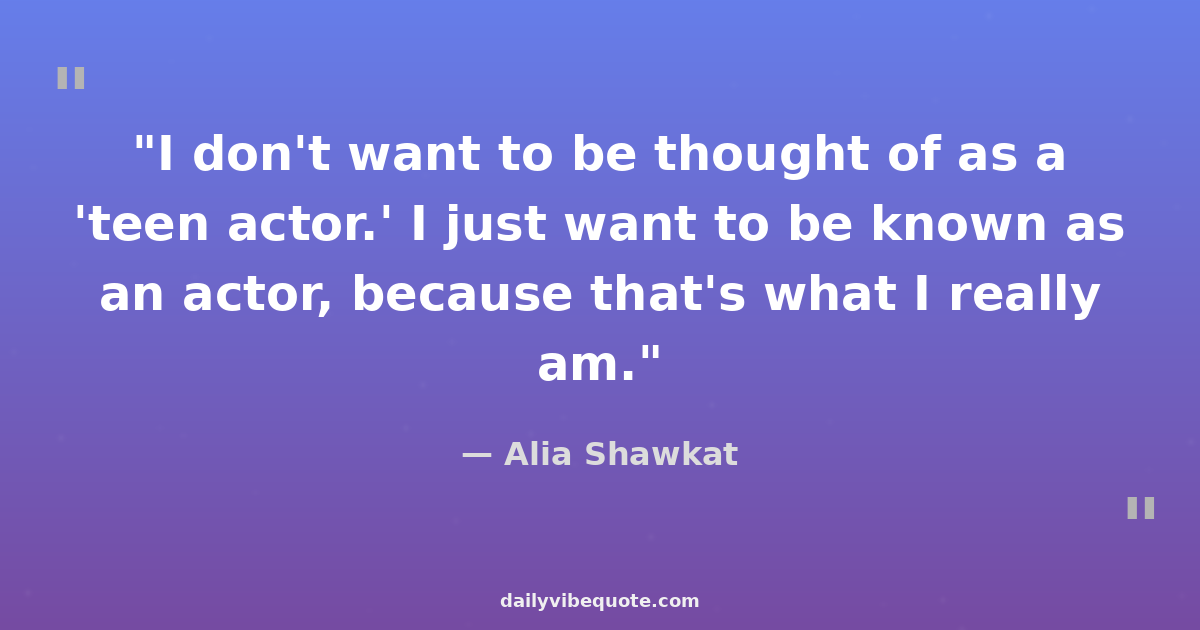 "I don't want to be thought of as a 'teen actor.' I just want to be known as an actor, because that's what I really am."