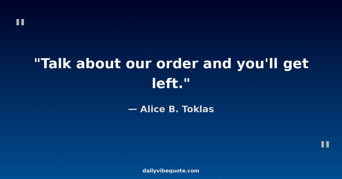 "Talk about our order and you'll get left."