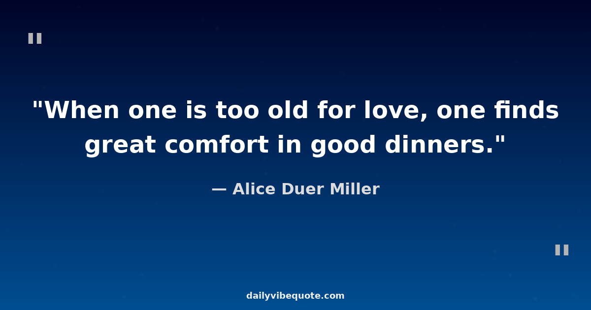 "When one is too old for love, one finds great comfort in good dinners."