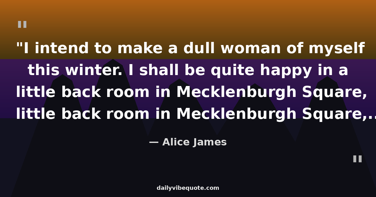 "I intend to make a dull woman of myself this winter. I shall be quite happy in a little back room in Mecklenburgh Square, at a window not so very high above the railings of the square."