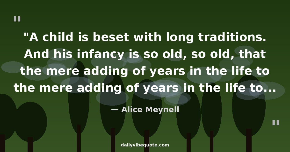 "A child is beset with long traditions. And his infancy is so old, so old, that the mere adding of years in the life to follow will not seem to throw it further back - it is already so far."