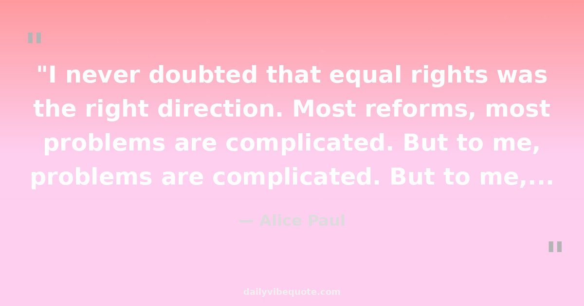 "I never doubted that equal rights was the right direction. Most reforms, most problems are complicated. But to me, there is nothing complicated about ordinary equality."