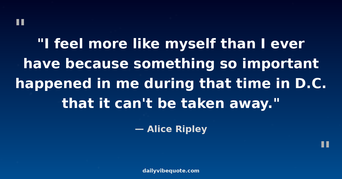 "I feel more like myself than I ever have because something so important happened in me during that time in D.C. that it can't be taken away."