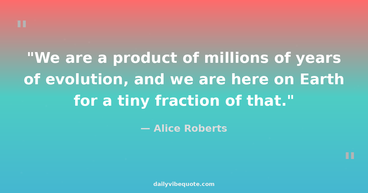 "We are a product of millions of years of evolution, and we are here on Earth for a tiny fraction of that."