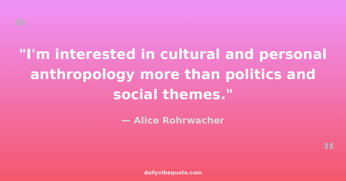 "I'm interested in cultural and personal anthropology more than politics and social themes."
