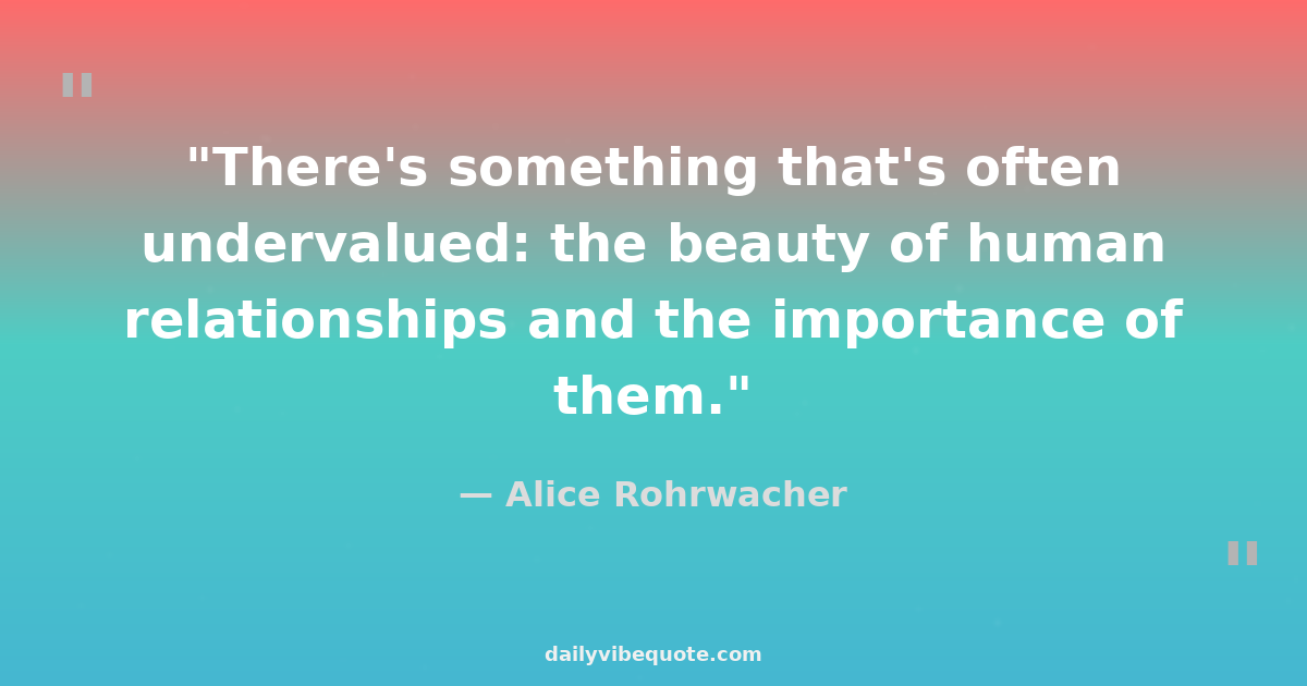 "There's something that's often undervalued: the beauty of human relationships and the importance of them."